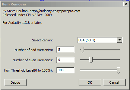 Actually the only reference to either Trebor’s or your dehummers was in these forums, and I think they both date back to 2009? If either of yous guys are interested in “finishing” your dehummers maybe a new topic over in the Nyquist forum? I’d be happy to supply a sample of the nasty buzz I am dealing with. Trebor’s filter worked great on it (better than the denoiser) but it does have artifacts - I didn’t mess with the “controls” at all. I suspect something that varied the notch depths vs music signal volume would be better at killing it in the quiet parts but not being so artifacty? In any case thanks to you both for these tools .