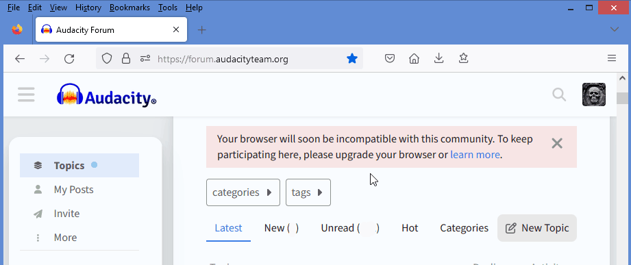 Just been informed that my browser will soon be “incompatible with this community” …