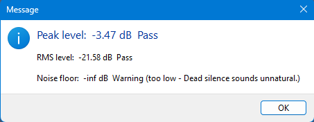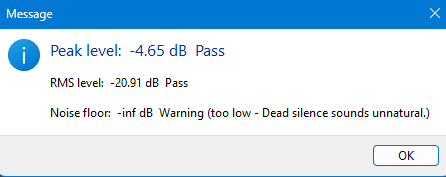 It SOUNDS fine, no issues with peaking, silence, buzzing, or the like, but the automatic checking doesn’t like the complete file. I’m at a loss for what to do because this plagues all chapters with this character. I don’t wanna reverse the effect, as it’s integral to the story, but DAMN is this frustrating when I’m so close to publishing.