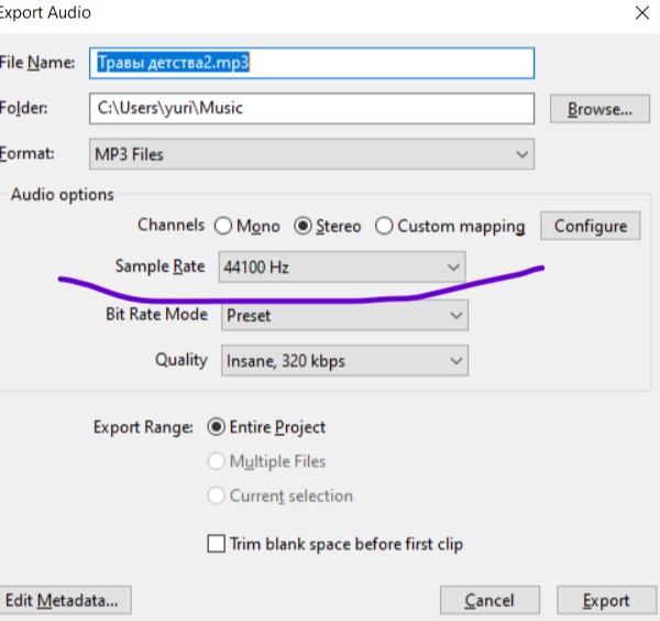 Anyway, now it’s extremely uncomfortable to export mp3 with 48000 hz. It’s just easy to forget to rewrite the value in the field, after export I don’t remember whether I set 48000 hz or forgot. And earlier there were no difficulties. Can it be fixed? For example to add in Edit - Preferences - Import/export a new paragraph: default export sample rate (something like this).