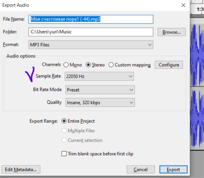 Imagine, you imported such file. You can easily when exporting not pay attention to the value or just forget to change. And the resulting file will have sapmle rate…22050 hz. And you won’t even know about it!