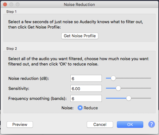 That’s it. No other processing, editing, or effects. My “final” version of that has 6, 6, 6 Noise Reduction. This one does pass noise, but it’s too close.