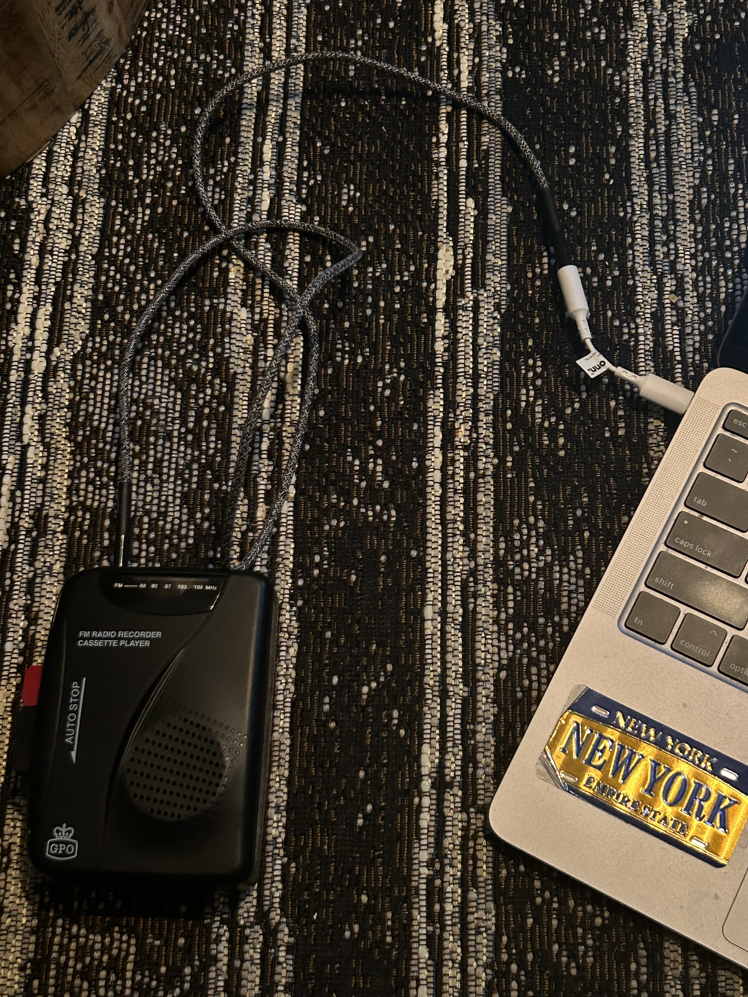 I’m using an ONN Aux to USB converter. The radio I’m using as a Sangean HDR-14, but I tried it with a different GPO radio and the audio still sucked. The Mac I’m using is a MacBook Air.