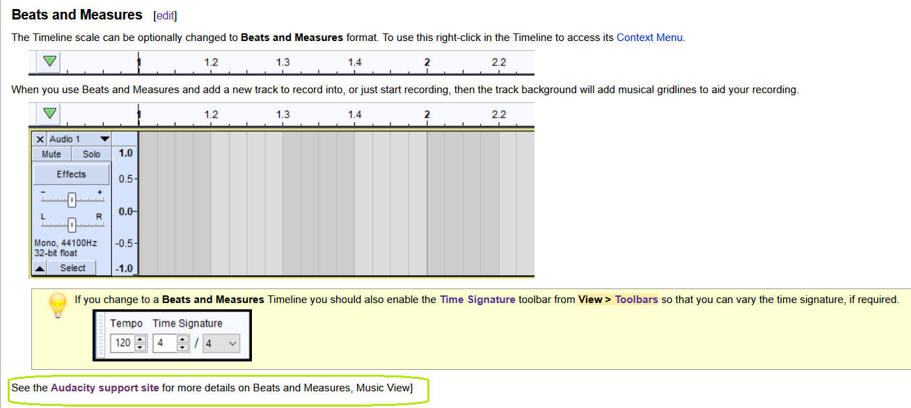 I will consider adding a Beats and Measures entry on the How To Use Audacity page of the Manual.