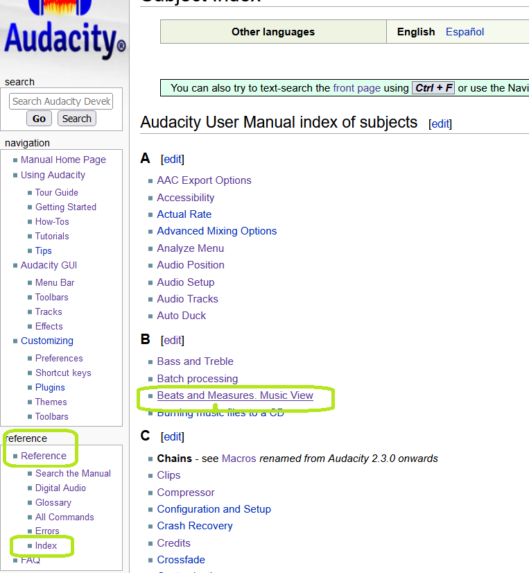 There already is an index - it’s a bit rudimentary - it;s accessed from the Reference nav-bar at the left of the Manual pages. I have added an enter there for Beats and Measures for the alpha manual for the upcoming 3.4.2 release.