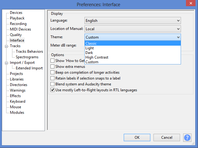 Audacity: preferences: interface …