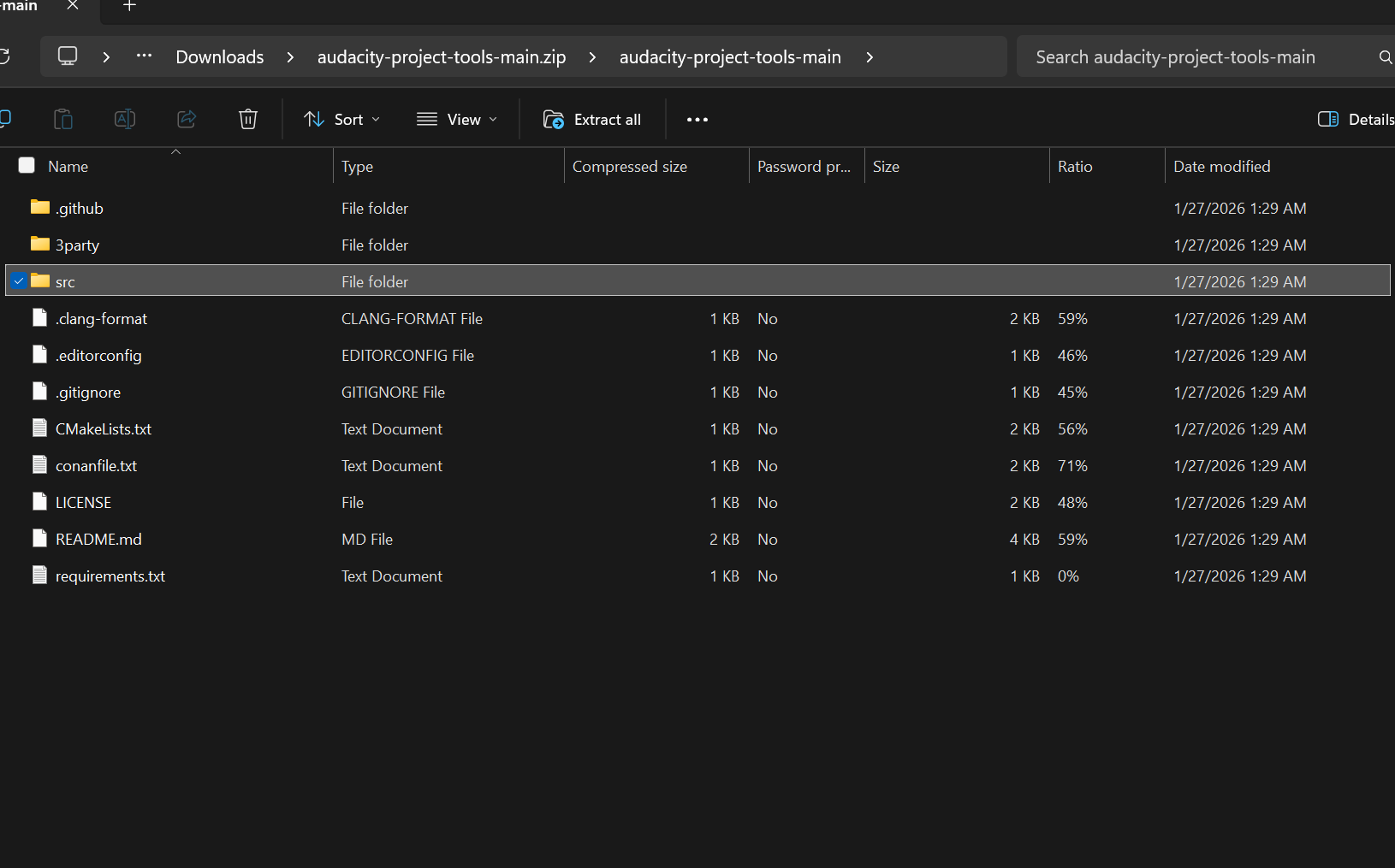 Step 3 of the installation process says to unzip audacity-project-tools and move the two .exe files you’re left with into a subfolder named AudRepair in your downloads directory