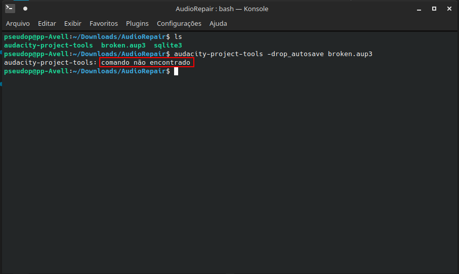 I made an attempt in Linux Ubuntu Studio and even following similar steps generates the warning ācommand not foundā (highlighted in red in my native language, which is Portuguese).