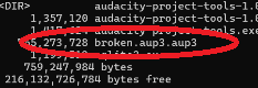 fix the file extension of ‘broken’. It has twice .aup3