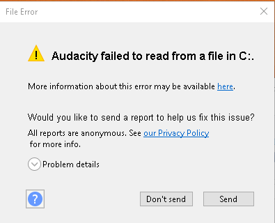 “value”: “Audacity failed to read from a file in .”,