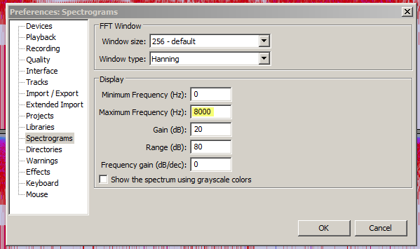 because the maximum frequency on my spectrogram preferences is still on 8000Hz …