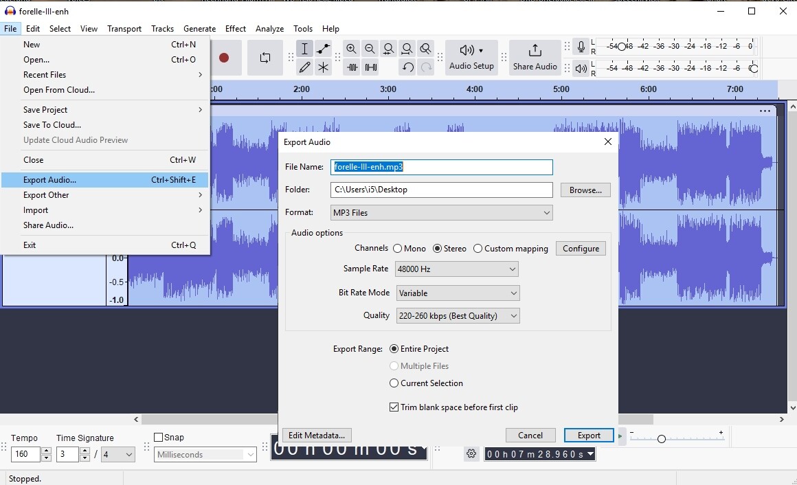 No, I really mean download a file I made in Audacity to my computer in mp3 format. The file is currently labeled .aup3. When I try to upload it to Invideo.ai it does not accept that file type. When I go into properties it says it is an mp3 file. I don’t know why Invideo won’t accept it.