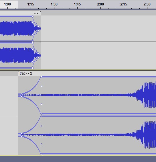 I just need to fade a couple of audio clips. When I use the envelope tool on a clip that does not start at 0, the rendering of the compressed wave seems to be offset. See attached image.
