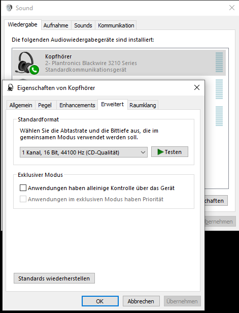 I want to hear it with my Headset (a typical headset you use for webEx, teams or zoom sessions)
