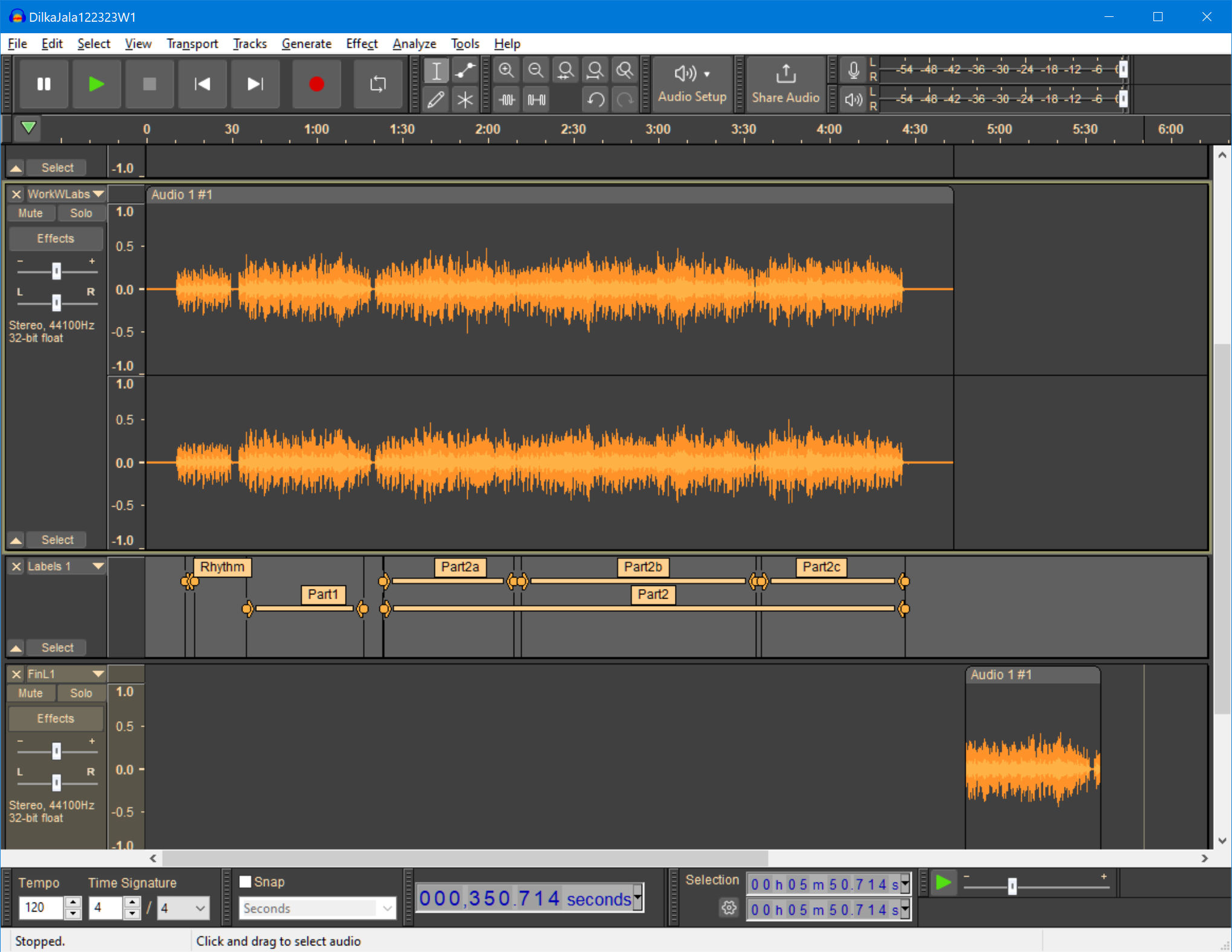 I created labelled regions with lot of diligence so each region seamlessly loops that music part. I want to select these regions on the audio track using the Label Track, and copy paste the regions (in various sequences) to assemble a new Final Track (for exporting).