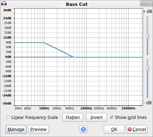 So let’s say that you selected a preset called “Bass Cut”, and this is what you see: