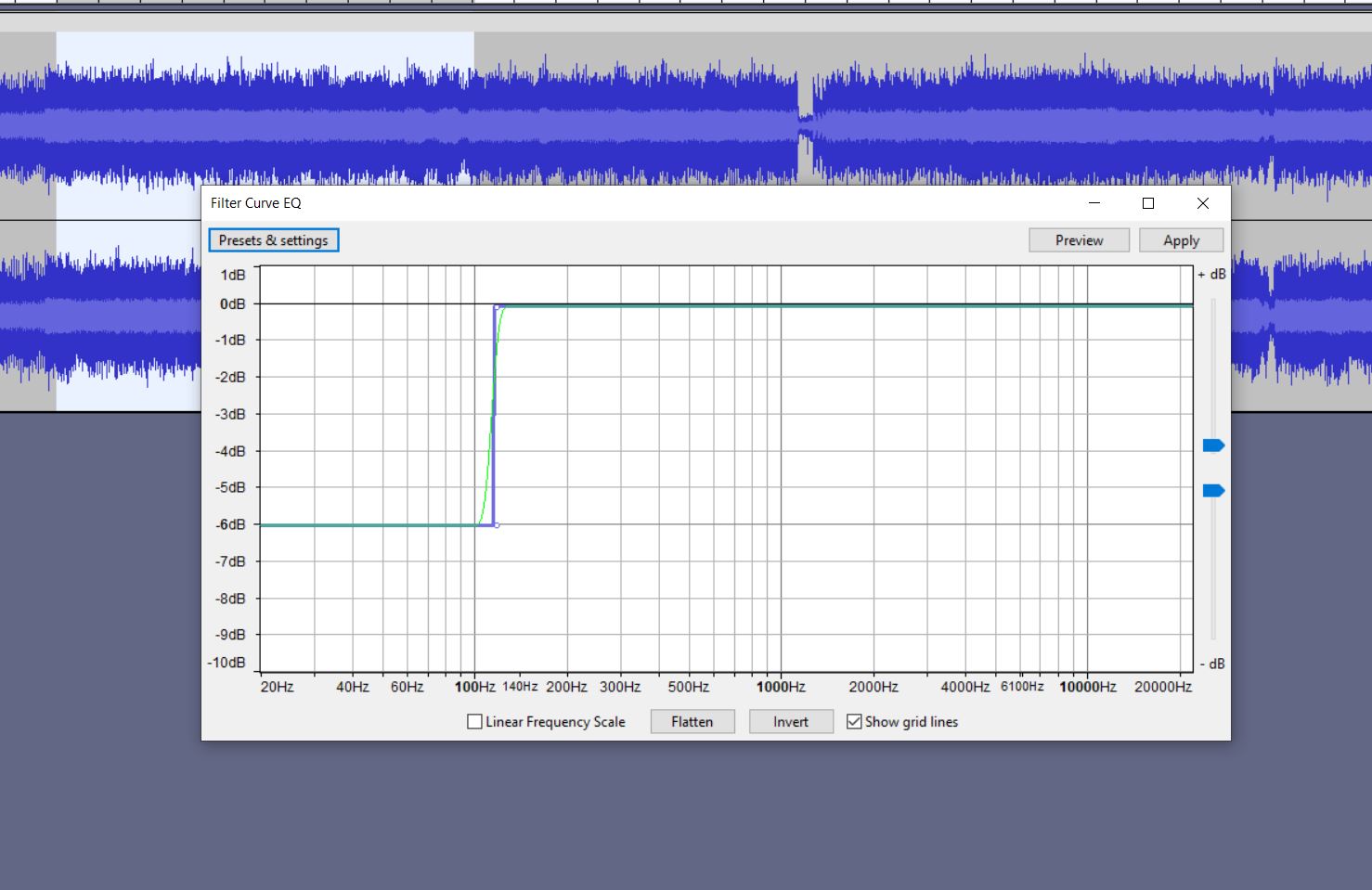 Hmm…lowest Level of -6dB doesn’t bring down the levels to 0% unfortunately. Instead: