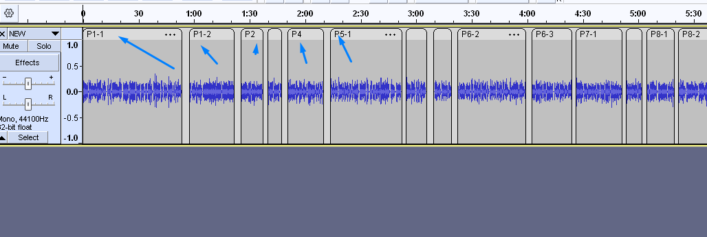 You can easily export multiple files. You need to put a text label at the point where the new file should start (and the old ends). If you have a text file containing the names of the pieces, you can copy/paste them into the labels. Select the point where the label should go. Then copy the text and select Command-Option-V (on Mac; I don’t know the shortcut for Windows or Linux), and the copied text will be pasted into your label mark.