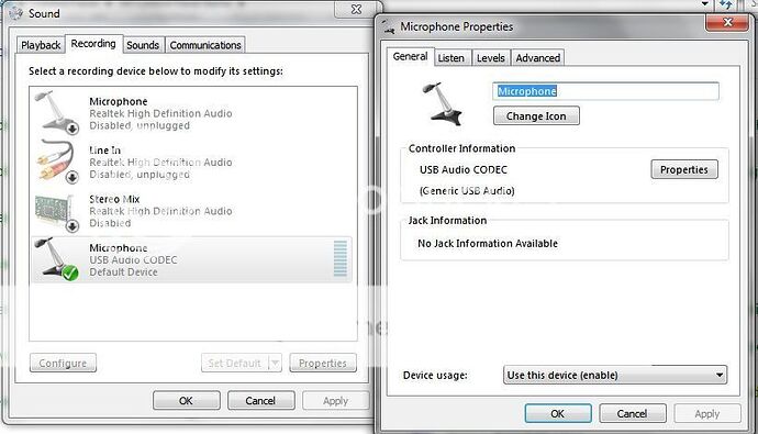 Did you have a look at the “Listen”, “Levels”, “Advanced” tabs of the “Microphone Properties”?