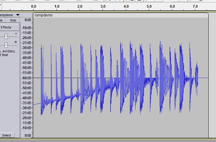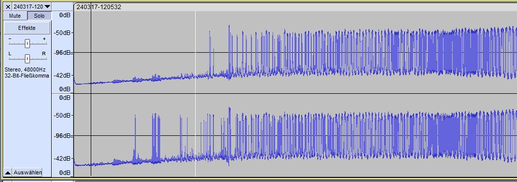 When loading the WAV into Audacity, I noticed a strange beginning of the recording (M/S) like this: