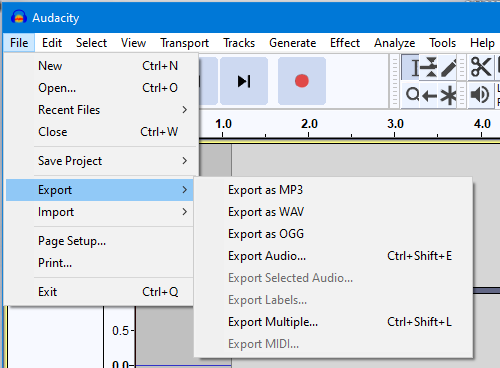 BTW this is similar to many earlier versions of Audacity where there were no separate commands for exporting in various formats (MP3, WAV, and Ogg) - and all those commands did was to pre-populate the export dialog with export format (which could still then be changed by the user in that dialog).