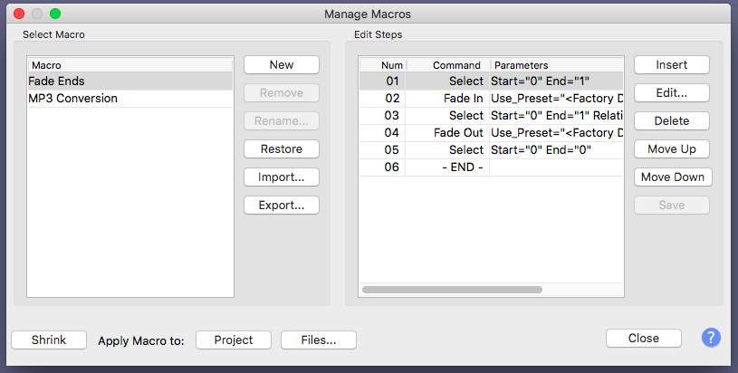 Open the show > Tools > Apply Macro > Audiobook-Mastering-Macro.