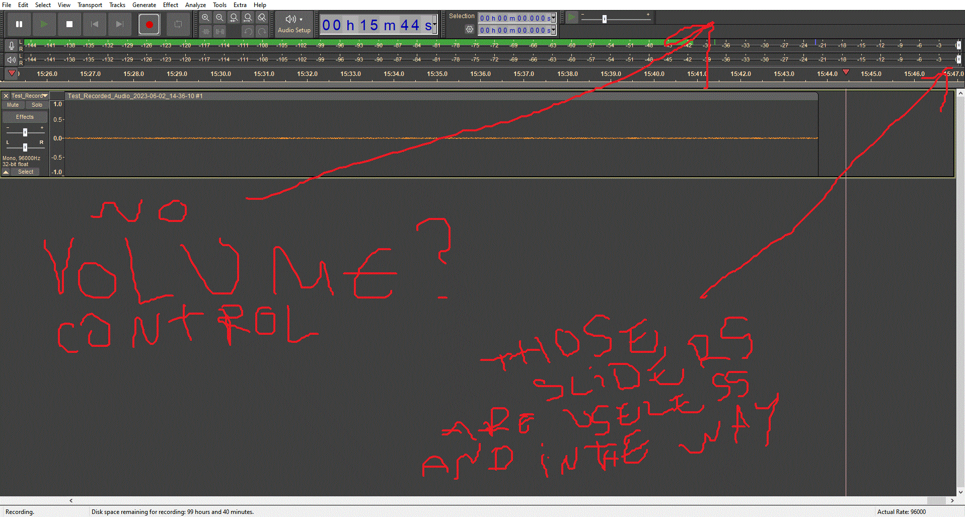 If I click record again the slider just jumps to end of the meter and recording level is same as was before…??