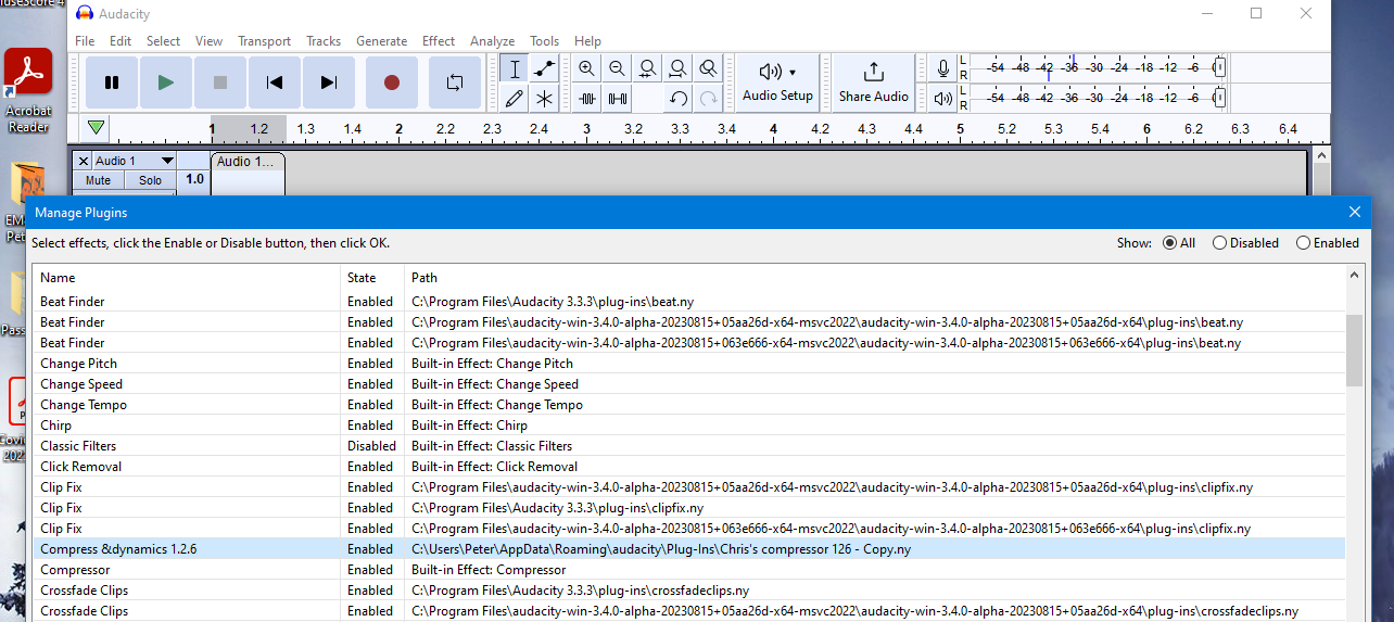 I have a Mac with an earlier version of Chris’s Compressor. I know it’s an early version because the newer version announces its number (1.2.6) at every opportunity and the version on my Mac Audacity 3.3.3 presents no version numbers.