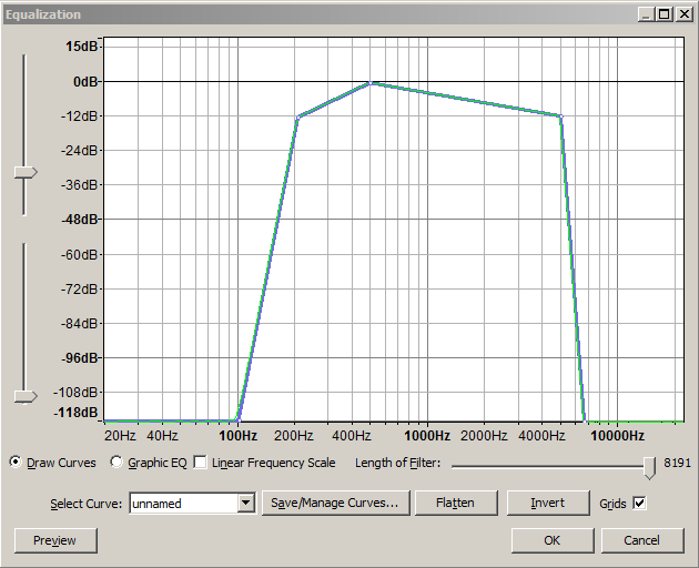 This produced an effect that much closer to what I envision, and definitely nullifies language recognition without sounding too ugly. I’m still struggling to reproduce the finer qualities I hear in my imagination, but I’m certainly in the right neighborhood.