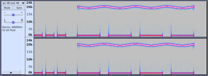 Open in Audacity 44.1 and 48 test files > distortions is always (it means sound card operating at 44100 now). I will remind you Audacity set up at 48000. In fact, it’s enough just run Audacity.