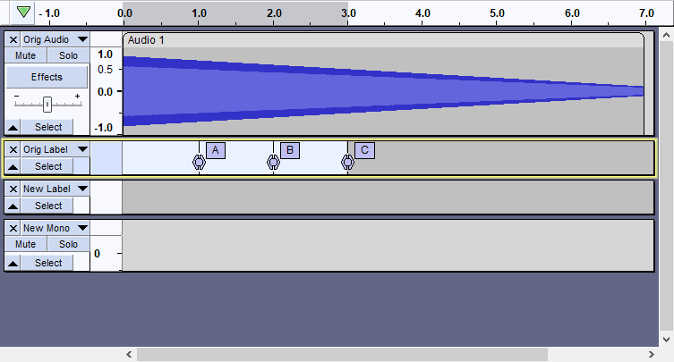 That’s what I would normally do, though if I need to drag the labels (I might need to see where all of the labels will land), I’d create a dummy track below the label track and generate silence into the dummy track. By selecting the label track and the silence in the dummy track, the two can be dragged as one unit. To delete the dummy track after it has served its purpose, click on the [X] in the top left corner of the track.