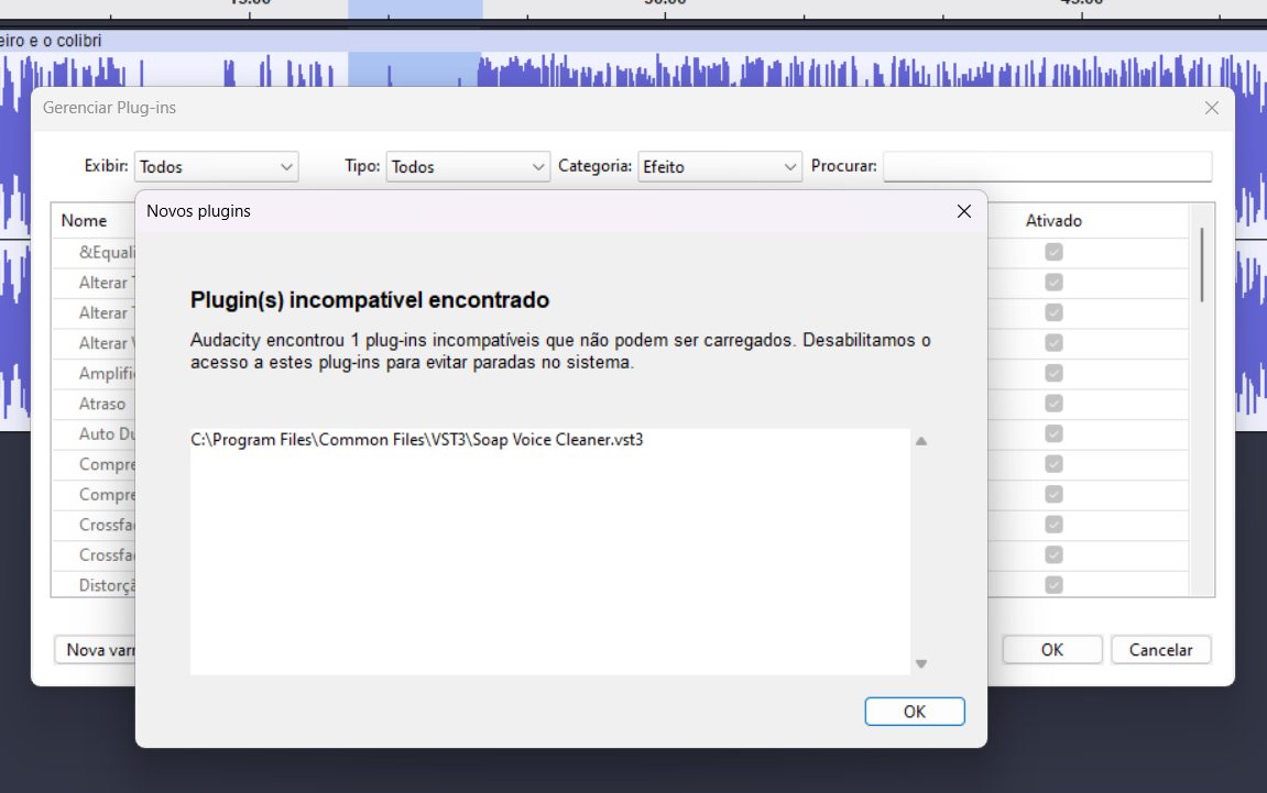 I´m working and I find this message of Audacity: “Audacity automatically disability a plug-in (voice cleaner).” But it not show whay it did that..