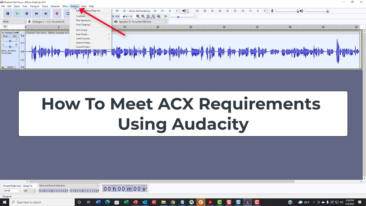 If the peak level is too high when RMS is at the right level, you may need to apply some compression. That will gently “squash” the highest peaks down to an acceptable level. See Audiobook Mastering - Audacity Support for a guide on that.
