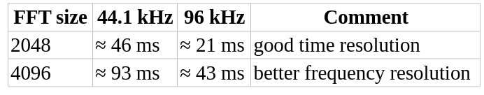 Resolution trade-off:{Long window (large FFT)⇒good frequency, poor timeShort window (small FFT)⇒good time, poor frequency