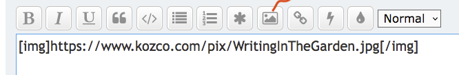 If you want to post a picture file from your desktop, scroll down from a forum window > Attachments > Add Files > Place Inline.