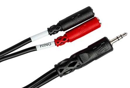 I connect the two microphones into the field recorder using a 3.5 mm TRS to dual 3.5 mm TSF stereo breakout cable. Search for it on Amazon and you should be able to find one.