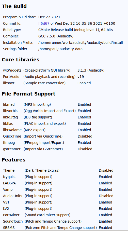 I must also mention that even though VST (for Linux) and LV2 support are enabled, I have never successfully